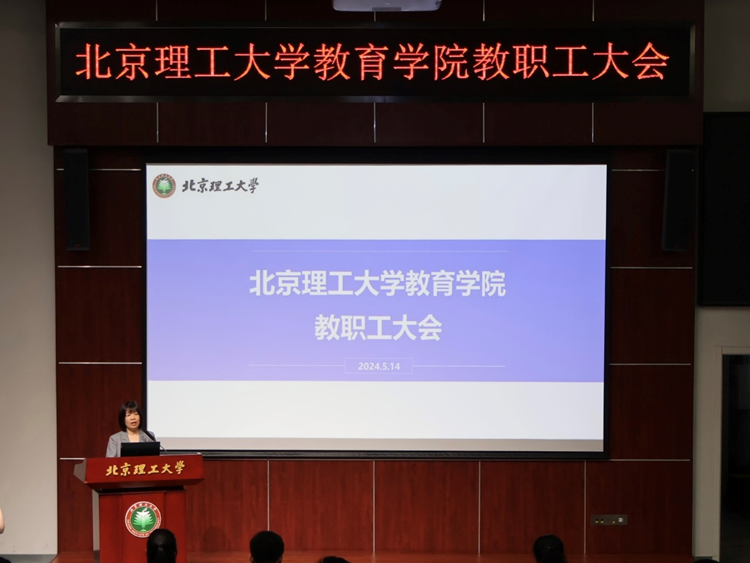 娄秀红传达学校党委关于教育学院建设工作指示精神,学校领导高度重视教育学院的建设工作,多次就师资队伍、学科建设、科学研究、人才培养等工作进行指导与具体部署,为学院指明了方向。她指出,在学校党委坚强领导下,学院领导班子和全院师生要进一步统一思想,凝聚共识,坚定信心、团结奋进,全面落实学校党委关于教育学院建设的战略部署,以时不我待之精神加速推进新学院建设改革,深入推进学院高质量发展,在教育学科建设中展现“北理工”担当。