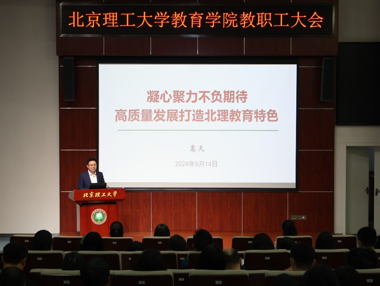 副院长(主持工作)嵩天以《凝心聚力不负期待 高质量发展打造北理教育特色》为题作学院建设方案报告。他指出,全院教职工要抢抓新时代发展战略机遇期,以“卓越引领、智慧赋能,打造北理教育特色”为总体目标,扎实推进有组织发展、形成团结发展奋斗的学院文化,走出一条工科深度融入的教育学发展之路。