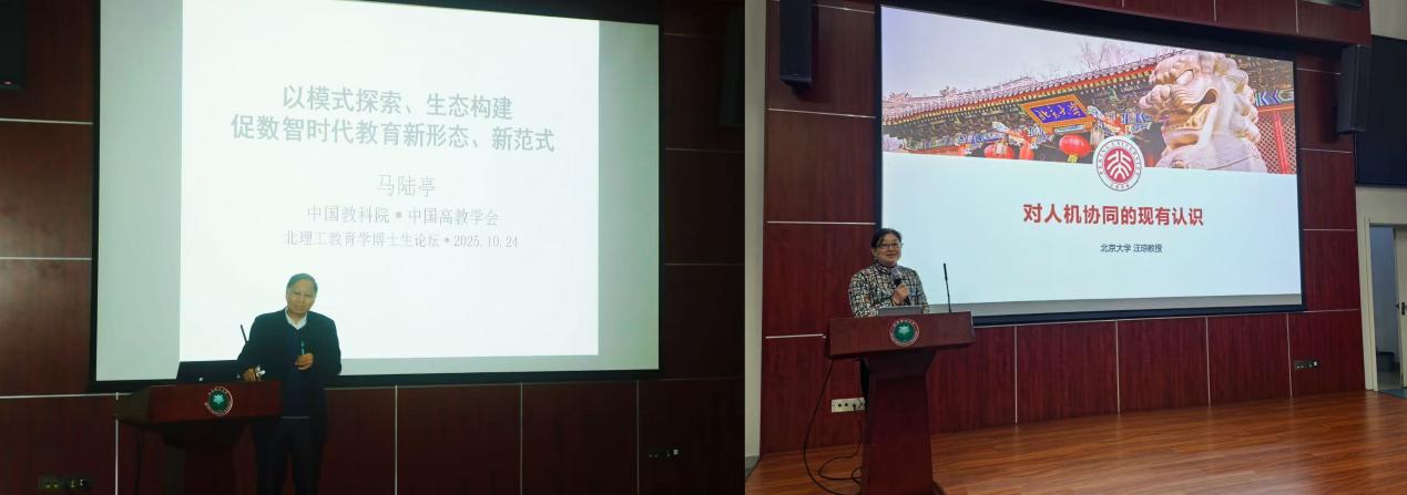 在主旨报告环节,两位资深专家分享了他们在人工智能与教育融合领域的前沿思考。马陆亭研究员以“以模式探索、生态构建,促数智时代教育的新形态和新范式”为题,系统阐述了数智时代教育生态的重构逻辑与发展路径;汪琼教授则围绕“人机协同的现有认识”,从理论与实践层面深入分析了人机协同在教育中的应用现状与未来趋势,为现场师生带来了深刻启发。